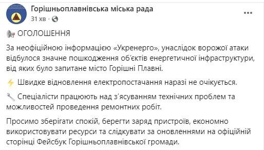 После ночной атаки в Харькове значительный дефицит электроэнергии, из-за чего Укрэнерго вынуждено вводить аварийные отключения. В некоторых районах Харькова уже есть перебои с водоснабжением.