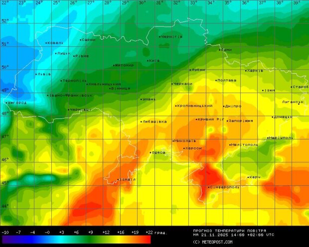 21 ноября в большинстве областей Украины температура воздуха повысится и составит в течение дня +9+14 градусов. На юге и кое-где в центре +12+18 градусов, в Крыму и Херсонской области до +20 градусов.