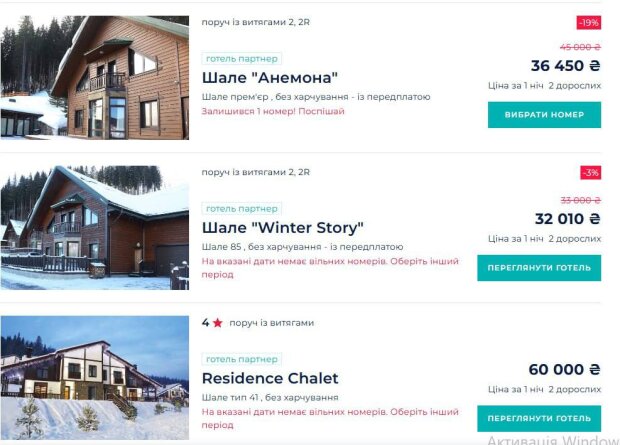 В Карпатах на праздники цены слетят минимум на 50%. Новогодние сутки в спа-отеле Буковеля стартуют от 20 тыс. грн, шале – до 60 тыс. грн, а Ski-пассы будут стоить 1500-1900 грн.