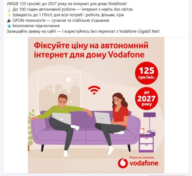 Кто может воспользоваться: новые клиенты, подключающие услугу от Vodafone. Для подключения необходимо оставить заявку на сайте оператора.
