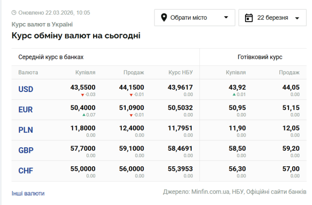 - Державний бюджет: На 2026 рік уряд заклав середньорічний курс долара на рівні 45,7 грн.