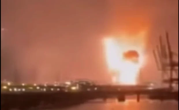 Вирує пожежа в порту Ленінградської області. За словами місцевих жителів, пожежа посилюється. російська влада підтвердила удар по резервуару з паливом.