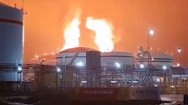 Масштабная атака дронов на Ленинградскую область рф, горит нефтяной терминал в порту Усть-Луга
