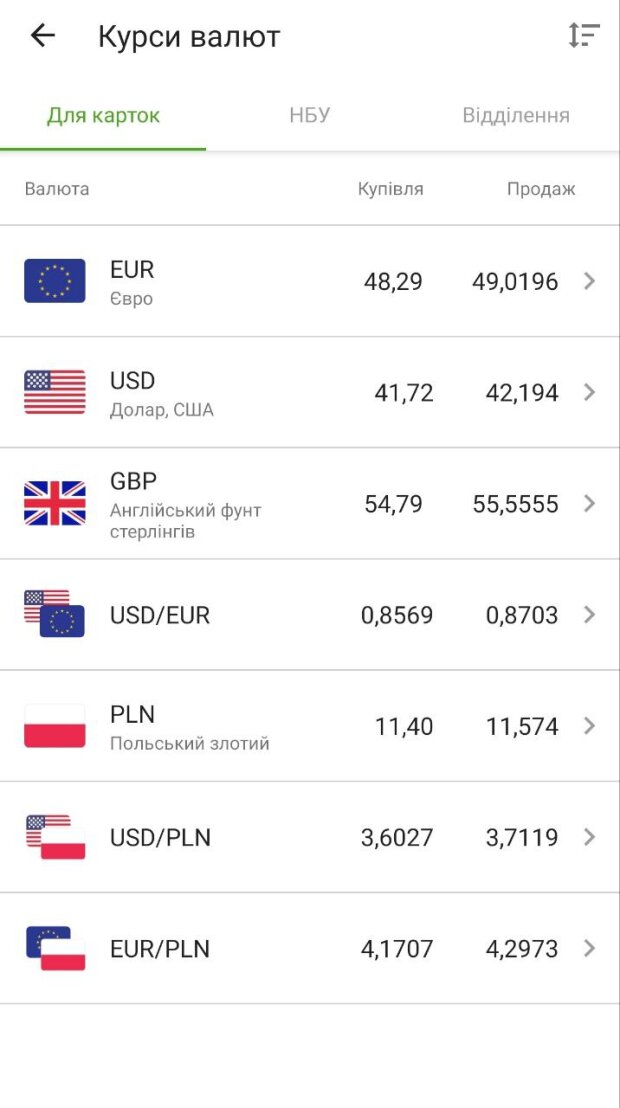 Долар США (USD) зберігає стійкі позиції: 41,72 грн за купівлю та 42,19 грн за продаж . Водночас, британський фунт стерлінгів (GBP) демонструє традиційно високий курс — 54,79 грн при купівлі та 55,56 грн при продажі .