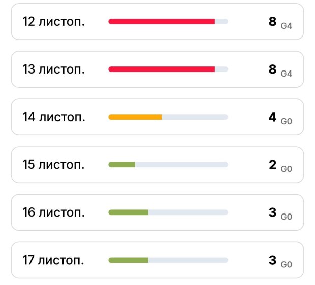 • З 14:00 до 17:00 прогнозується рівень 4 бали.