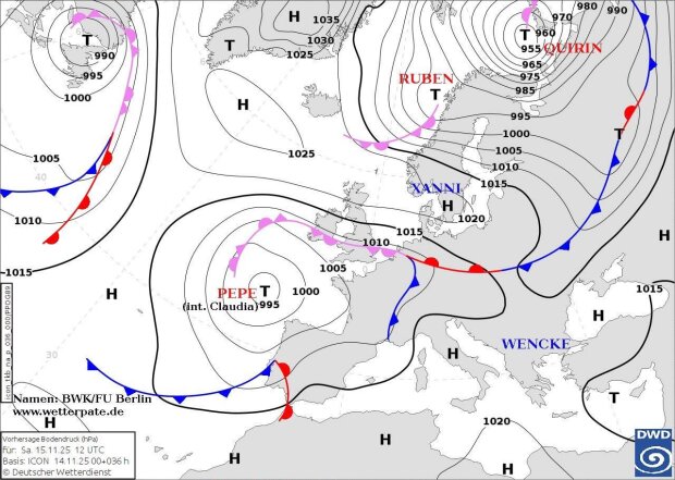 У суботу, 15 листопада, в Україні очікується прихід нового атмосферного фронту, який принесе опади та відчутні температурні коливання. За прогнозом синоптикині Наталки Діденко, погода почне активно змінюватися, нагадуючи про справжній листопад.