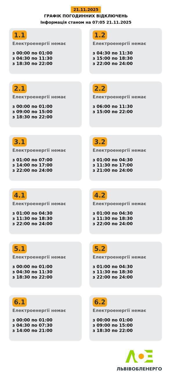 Оновлений графік вимкнення електроенергії у Львові та області на сьогодні: