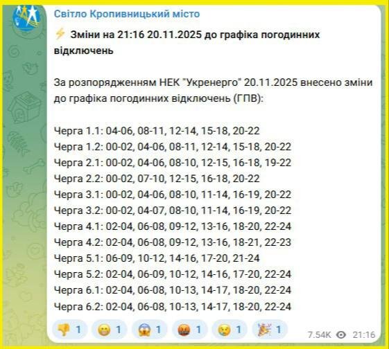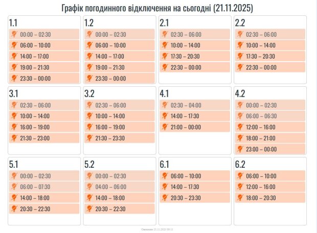 Дніпропетровщина: графіки відключень на 21 листопада:
